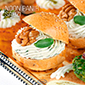 spiced homemade bread, cream cheese, herbs, walnuts