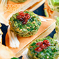 crispy napoleon bowl, avocado salsa, smoked salmon