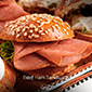 homemade bread, cheese, beef ham, green herbs