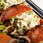 chicken and vegetable salad, pesto sauce